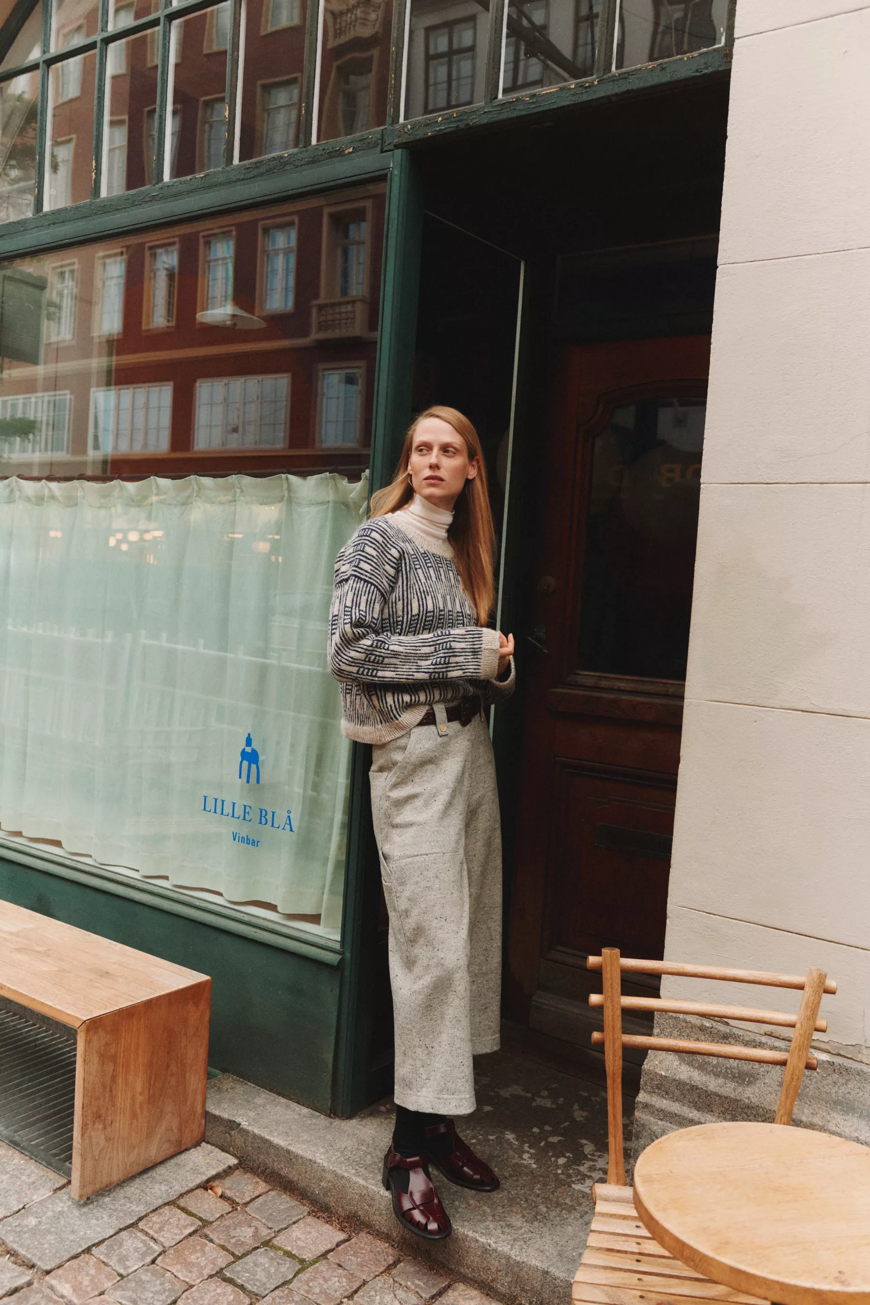Der Grace Sweater versteht sich als eine Hommage an zeitgenössische nordische Strickkunst und schlägt eine ruhige Brücke zwischen Vergangenheit und Gegenwart. Er wird aus Isager Jensen Yarn gestrickt.